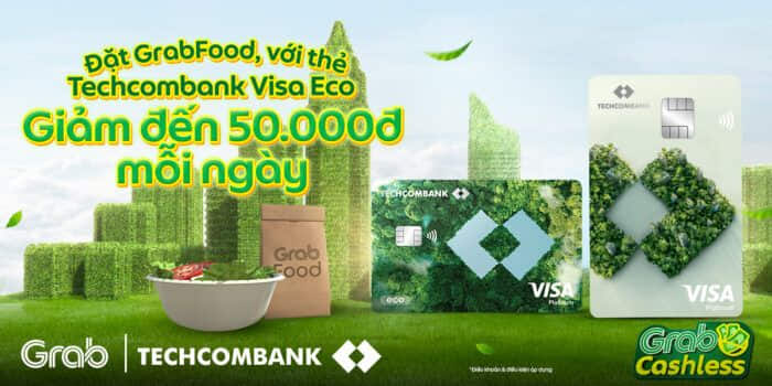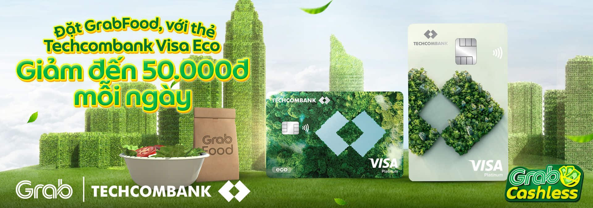 🥗 Ăn chay, ăn lành, thì cứ đặt GrabFood , thanh toán qua thẻ Techcombank Visa Eco 🥬 để hưởng ưu đãi mỗi ngày nhé.