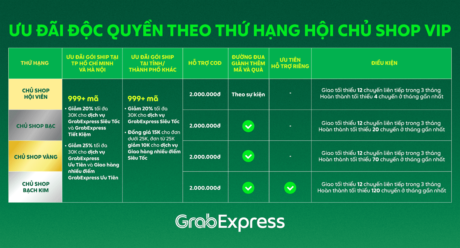 – Chủ Shop cần hoàn thành tối thiểu 12 chuyến và giao đơn liên tục trong vòng 03 tháng để đủ điều kiện trở thành Hội viên.