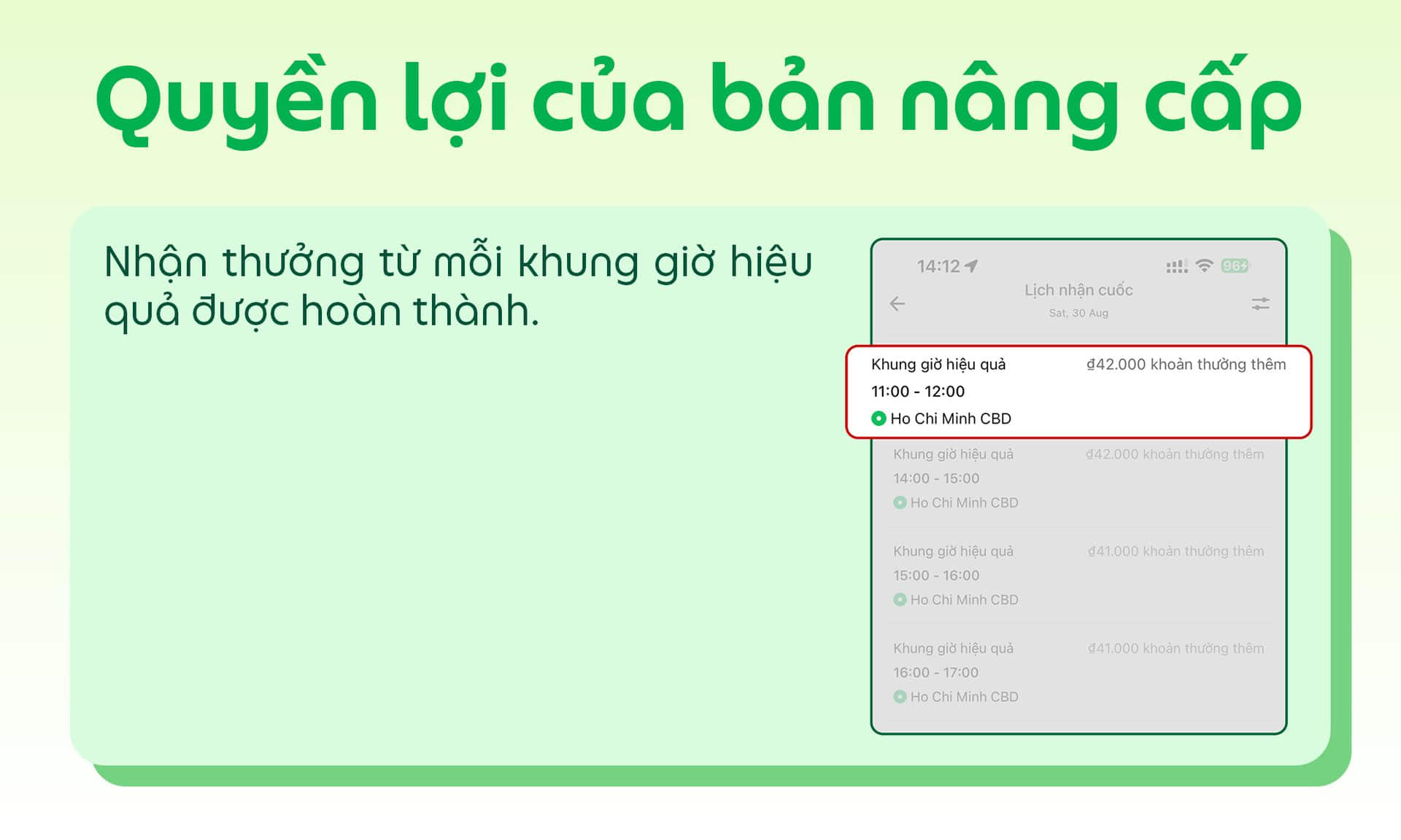 Từ ngày 20/10/2025, Grab triển khai thử nghiệm Khung giờ hiệu quả – bản nâng cấp tại TP. Hồ Chí Minh (không bao gồm khu vực Bình Dương và Bà Rịa – Vũng Tàu), chi tiết như sau: